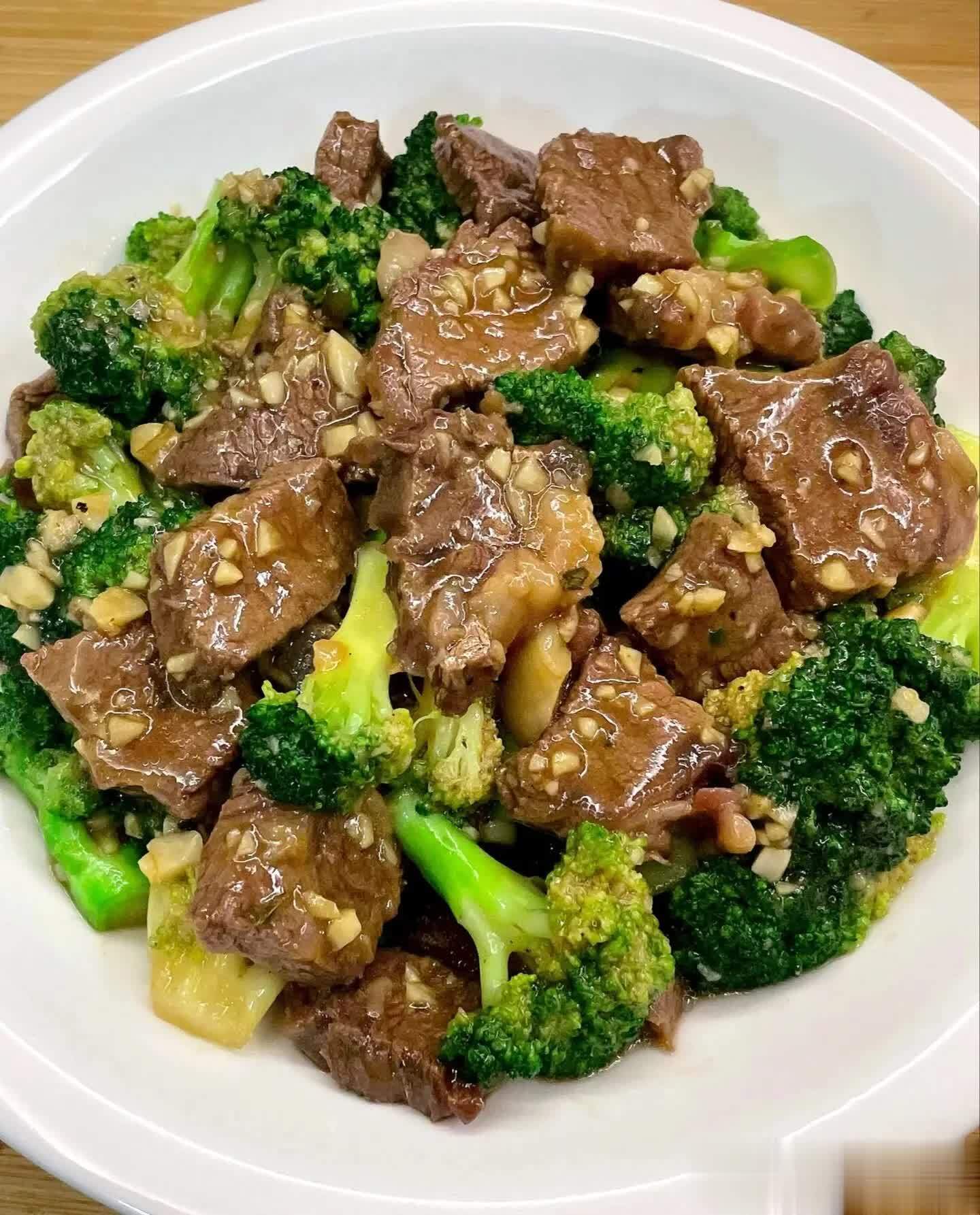 食材:西兰花1颗、牛肉200克、姜、蒜、料酒、生抽、淀粉、盐、食用油适量。
