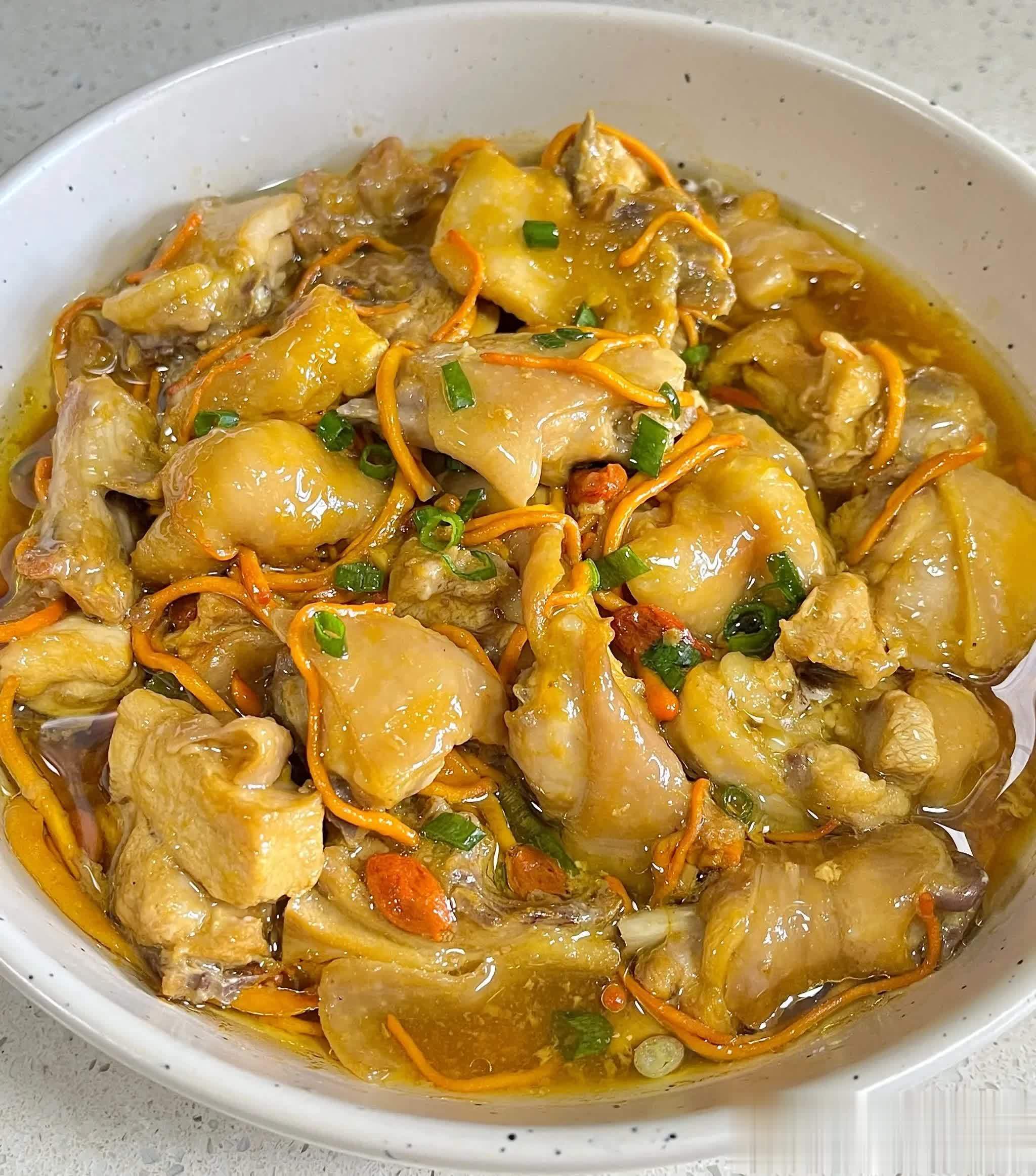 7. 上桌享用:将蒸好的鸡肉和虫草花取出,盛盘后可以撒上一点葱花增香。