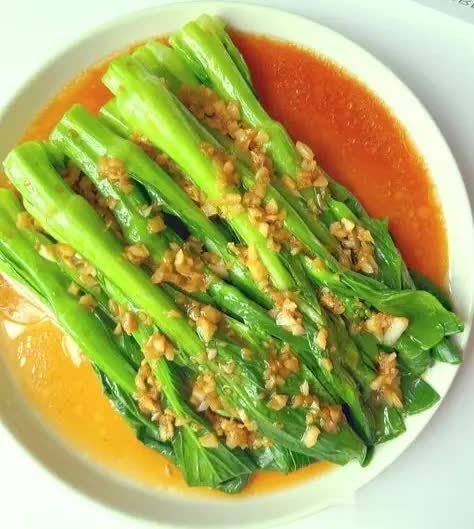 2、起锅热少许油小火炒香蒜末、小米椒,加入3勺生抽、少许盐、少许代糖,倒入小半碗清水煮沸关火,淋到盘中油菜上,再淋入半勺香油即可。