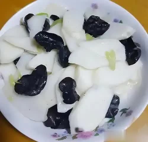 食材:山药1根、木耳适量、青椒1个、姜、蒜、盐、食用油适量。