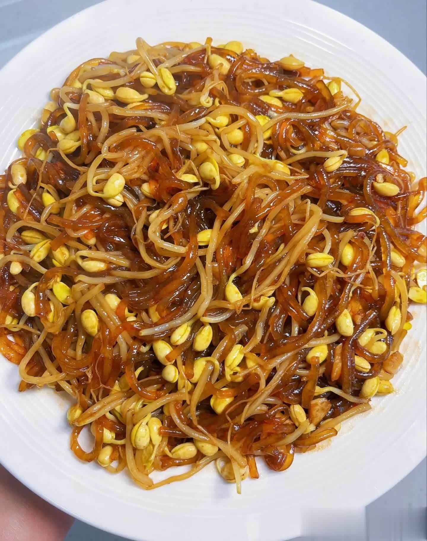 做法:自家生发的绿豆芽,有根须,反复清洗两次,根须可以去掉,也可以不去掉。