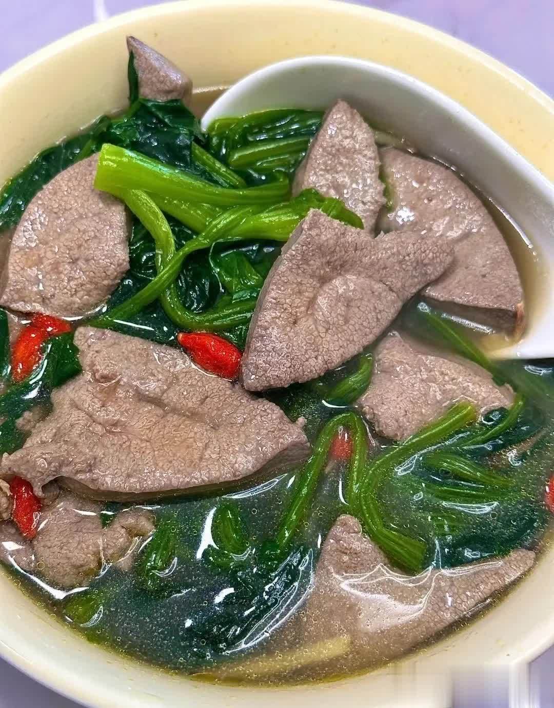 6. 放入猪肝,转小火煮5 - 8分钟。